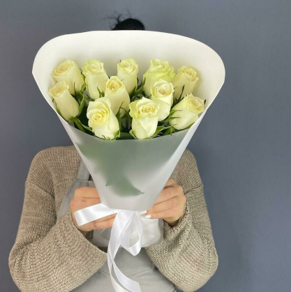 Купить букет из 11 белых кенийских роз в Астрахани